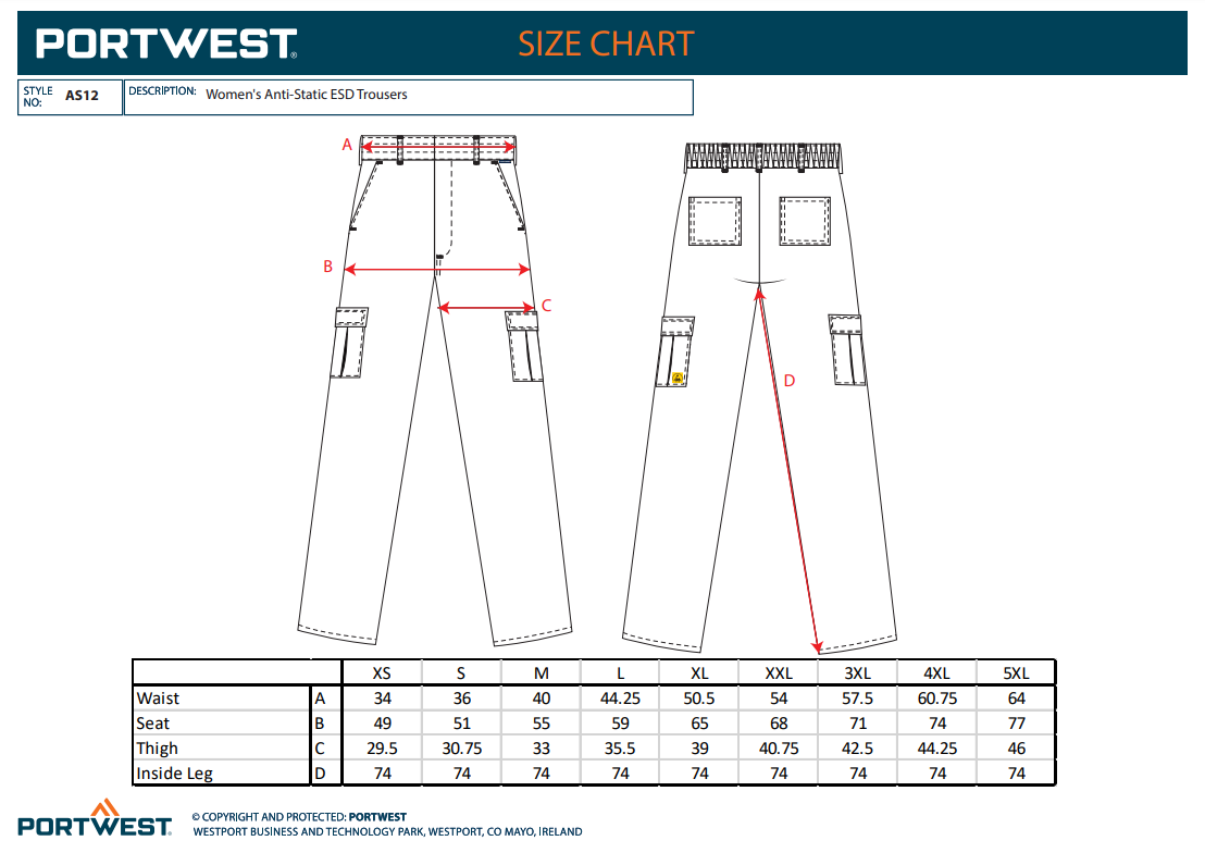 Portwest AS12 Women's Anti-Static ESD Trousers AS12